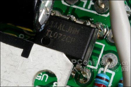 另一块芯片是作滤波用的运放,TI的TL072CP,滤除解码芯片输出信号中残存的数码信号杂波。实际上只要工作点符合要求,作为滤波用的运放,不用型号产品间的效果差别很小(与作前级的运放用途不同)。