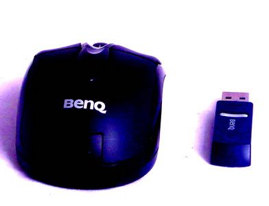 BE800威力双侠无线键鼠套装是明基另一款比较有特色的产品。 键盘和鼠标均采用AAA电池。BE800的键盘设计非常紧凑,尺寸比普通的标准键盘明显小一圈。但按键还是标准大小,并没有任何缩水。BE800将传统的方向键部分作了调整,将占3个键宽度的区域改成了1个键宽度,将Home/End 移动到了Fn键的区域。实际使用过程中,我们还是很快地适应了这个方式。拿到这款键盘,可以明显地觉得HTPC 用重量轻、体积小的键盘才更合适,方便到处移动和放在腿上使用。BE800键盘的快捷键不多,只有5个,但对于HTPC 来说完全够用了,最重要的音量加减功能都有了。