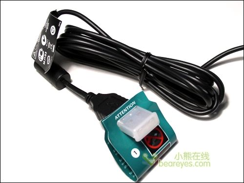 精致的线材、磁环屏蔽和USB保护套样样齐全,罗技甚至细致到,将USB接头处配有Attention,以提示用户要先装驱动后插入摄像头。