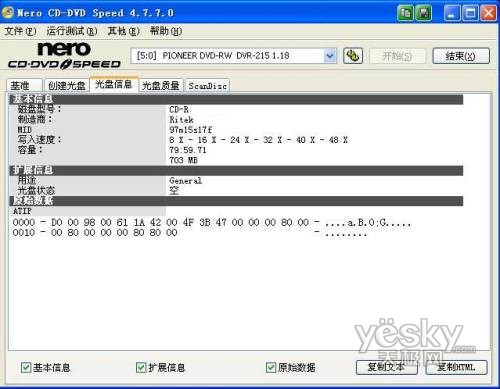 为了做更为准确的数据分析,我们用最为权威的NERO光盘软件来获取刻录曲线图,以求达到准确、有效的测试结果。
