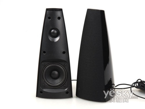 e3350卫星箱的造型很适合搭配液晶显示器,而且即便不与任何PC产品搭配,它也很容易和家居产品相融合。卫星音箱的表面经过了高亮镜面效果处理,与低音音箱一样,容易留下指纹,需要经常擦拭。