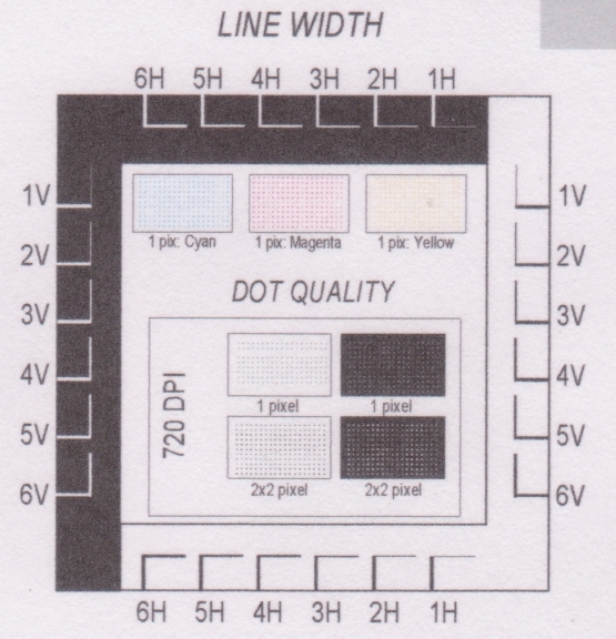 接着我们测试其在线条方面的打印性能,测试采用了专门测试分辨率样张进行,打印介质采用普通80克A4复印纸,打印模式采用精细打印模式,下面就是具体的打印效果:
