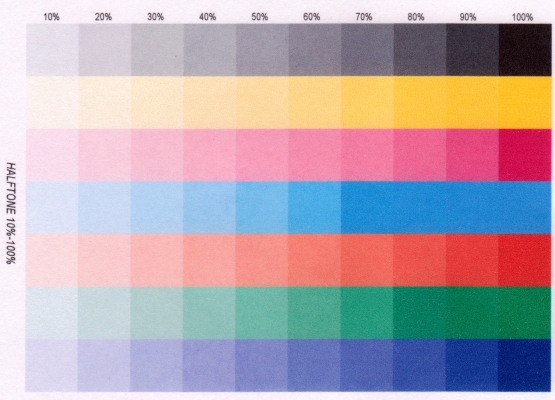 色阶过渡测试,HP Photosmart D5368 蓝色表现一般,其他颜色表现都很好