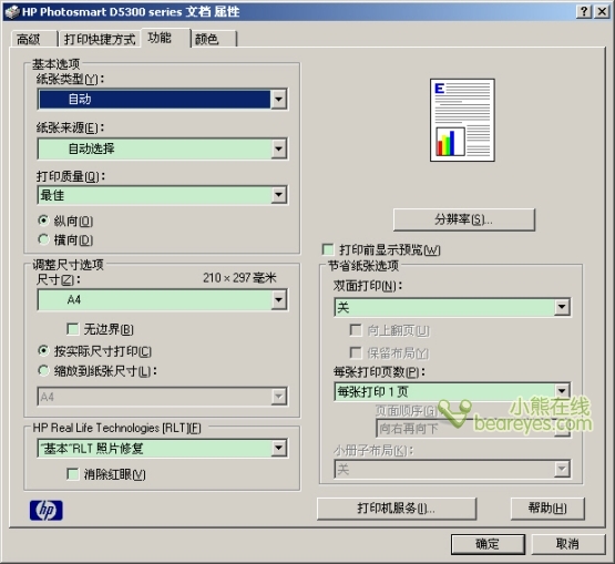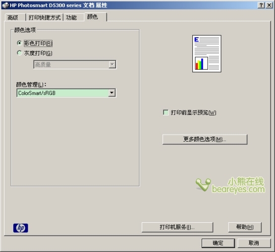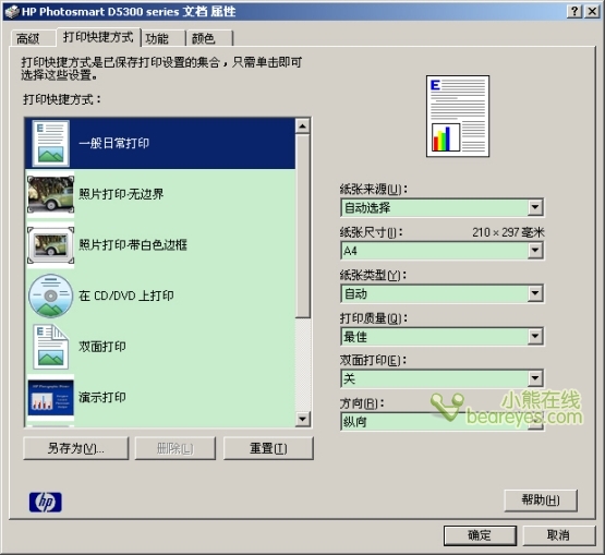 HP Photosmart D5368 喷墨打印机所采用的驱动设定界面是惠普一贯的界面形式,使用过惠普机型的朋友都能很快上手。