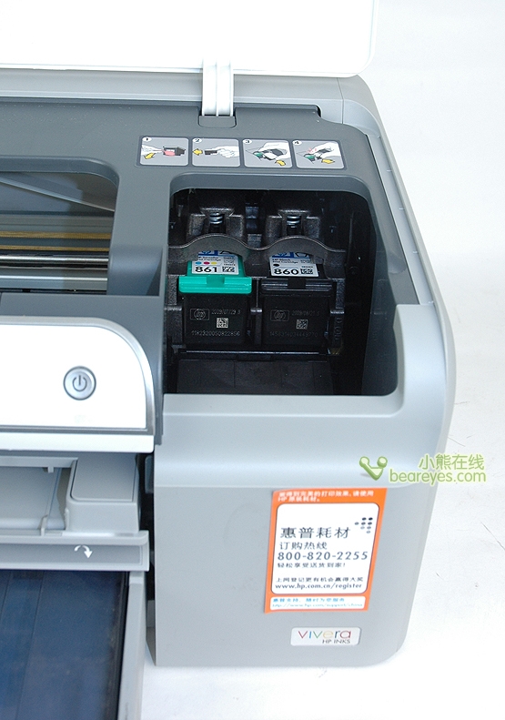 HP Photosmart D5368这种双墨盒设计,对于初级用户来讲很方便,可以很简单的更换和调试校正,但是这种彩色集成墨盒也会造成部分墨水浪费的情况。另外,HP Photosmart D5368 还可以选配高容量墨盒,打印量可以增加一倍。惠普新版“VIVERA”墨水能够提供更持久的色彩保证,打印的照片历经数代仍亮丽如新。