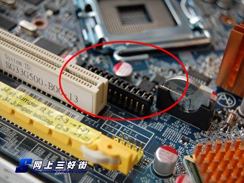 笔记本没法升级加显卡,准系统却可以。作为最专业的准系统大厂,浩鑫为我们升级显卡的可能。不但预留了PCI-E 16X全速插槽,而且还有硬件跳线。不过在安装独立显卡时大家要注意一点:这里设置的跳线就是更改板载显卡输出与独立显卡输出的,通过将这里的跳线跳至另一端,来达到屏蔽板载显卡并使用独立显卡的目的,避免驱动冲突。
