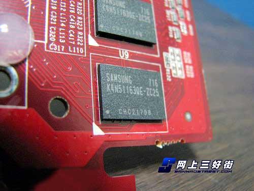 显存搭载了三星的2.5ns-GDDR2显存颗粒,构成了512M/128bit的显存规格,显卡核心和显存的默认频率为600MHz/800MHz,要稍微的高于公版的产品,并且还拥有更大的显存容量,在个项应用中均能够获得最佳的表现,也可以满足微软Vista对显卡的苛刻要求。