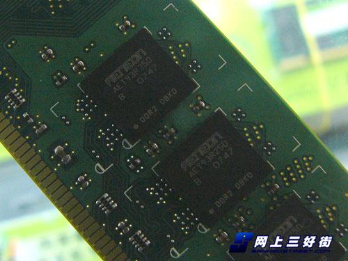 这款产品采用16颗粒双面封装,每颗粒容量为64MB,采用FBGA方式封装,组装于马来西亚。做为世界级的企业,奇梦达在包括中国大陆在内的世界各地建有五个大型12寸晶圆厂。具备如此雄厚的实力才使这条价格并不高昂的DDR2-800内存能够在5-5-5的低延迟下稳定运行,而且不用加装散热片,不必上机测试,即可见其不俗。至于电容、焊点等做工用料上的看点,更是无可挑剔,体现了原厂条的风范。