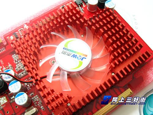 在散热器方面,杰微 JW8500GT海量版显卡采用了一体化的散热器,显卡散热器覆盖显卡的核心和显存,同时显卡密集的鳍片能有效增大显卡散热器的散热面积,同时还配备了一个小风扇,这样的散热器足以应对8500GT这样的显卡的发热量。