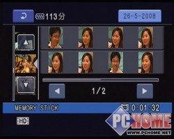 在回放中识别人脸比较特别,能在一段视频中把有人脸的场景标识出拉,通过点击人脸可以把视频直接拉入这个段落开始播放。其实我们也可以把其看成一个以人脸为关键的分割模式。如上图可见,一段视频1分32秒的视频,在TG1E的检测下可以检测出2页共16个人脸段落,虽然有些相隔十分的近,但是这也说明索尼TG1E的识别能力十分精细。