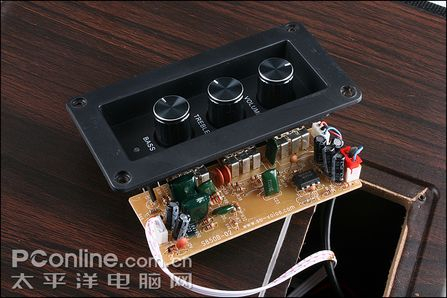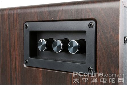 音量调整置于音箱侧面的设计在近几年比较常见,由于2.0的独特性,旋钮置于前障板明显是自杀行为,而置于背板虽然可以降低结构复杂性,但是却是以损失用户易用度为前提的。而置于侧面确是一个不错的方案,控制起来将会比较方便。不过如何让人更清楚的了解自己目前正在调节的音量属性却是一个值得斟酌的地方。