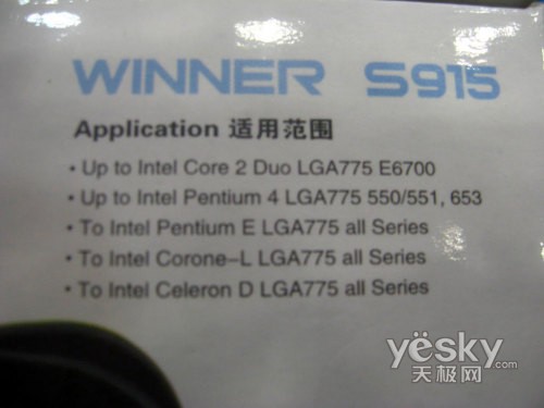 从包装上我们清楚可以看到这款散热器采用了静音设计,支持现在主流的64位双核CPU。可见其性能一定不可小视。