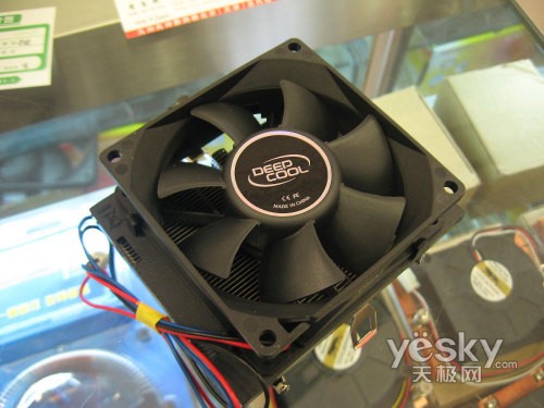 劲冷大黄蜂CPU散热器采用了风扇侧吹的散热方式,散热风扇采用了高品质低噪音的9cm风扇,在低转速的情况下能够产生很大的风量,静音效果相当不错。