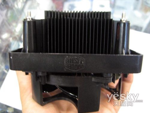 散热鳍片为独家的9度铝挤斜齿散热片,使散热片的角度和风流达到完美配合,而不会出现热断层的情况而引起散热不畅。而在风扇框上还雕刻了CM的LOGO起到很好的宣传作用。