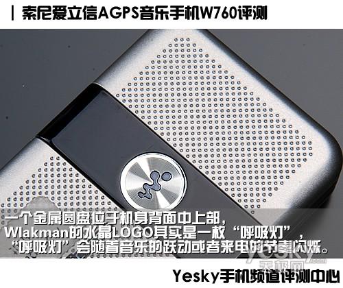 索尼爱立信W760的机身背面设计比较简单,通体的网眼设计,可以有效的增加背部的摩擦力,但相应的缺点就是容易积存脏污,而且不好清洁。一个金属圆盘位于机身背面中上部,Wlakman的水晶LOGO其实是一枚“呼吸灯”,在灯光开启时,“呼吸灯”会随着音乐的跃动或者来电的节奏闪烁。