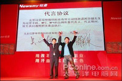 周华健谈到自己和纽曼MP3的不解之缘时,他一再表示:这次能成为纽曼MP3、MP4产品形象代言人也非常开心,因为他一直非常钟爱纽曼这个优秀的民族品牌。如今,纽曼不仅有雄厚的研发实力,旗下每一款时尚精品都带给大家更多的音乐灵感,比如音质优秀的MP3、超大容量的MP4,还有功能丰富的手机系列产品……说罢,他还现场秀了一把纽曼的手机,令在场的各位观众都忍不住尖叫起来。然后,在众多媒体和纽曼代理商的见证下,在签约协议书上郑重地都签下了自己的名字。