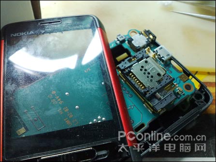 咨询了维修人员,如何对待这些屏幕不显示的现象呢?得到的结论是,排线如果真的坏,那么换排线和换液晶的代价几乎相同,因为诺基亚5610xm的排线设计比较特殊,要单独拆下排线更换可谓是相当的复杂,拆不好基本也就废了,所以很多时候一般经过详细检测,真的是排线坏掉,基本只能连同液晶屏一起换掉,这个代价就比较昂贵了,但是没办法,不修手机就不能用了。还有引起花屏的因素可能就是主板上的问题,比如CPU或者电源IC等部件的进水损坏,这样也会导致屏幕不能正常显示,如果修理主板上小原件的话,那么花费不会比换液晶昂贵。所以这里笔者也想告诉大家,其实手机维修和手机贩卖一样,都是讲究诚信的,如果维修店不太负责的话,他们也会避轻就重的帮你修理手机,那么花费也会高了。