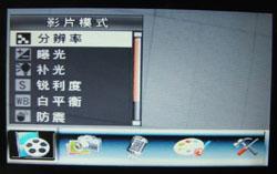 拍摄模式下,可以对影片、照片、录音、场景和系统参数进行设定,大项目需要左右两个方向键来选择,子项目通过变焦杆进行选择和确定,初次操作不是非常顺手,需要一段时间来适应。如果能够设计一个五维摇杆会方便很多,希望能在日后的产品中得到改进。