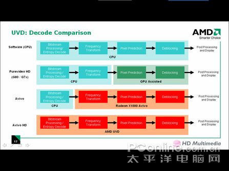 在高清视频领域,H.264和VC-1两大编码格式占据主流,特别是VC-1,在微软的大力推广之下,大多数高清影片都采用了VC-1编码,不少蓝光电影采用了VC-1编码,网络上流行的HDTV视频文件也有很多使用VC-1压制。AMD从HD2600/2400系列显卡以来,不但支持最新DirectX10,先进的核心架构在高清视频播放方面更有突破性的发展,成为新一代游戏高清全能显卡的典范。