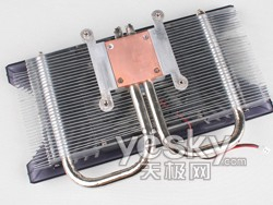 由于使用相对落后的65nm制造工艺,G94核心发热量仍然不可小视,公版散热器满载运行是温度居然接近80度。而盈通 G9600GT-512GD3游戏高手显卡采用了双热管的Evercool(劲冷) Turbo2散热器,使用铜制底座吸热,热管和做工精良的散热鳍片看起来质感不错,配合大口径风扇加强散热效果的同时也保证了静音。