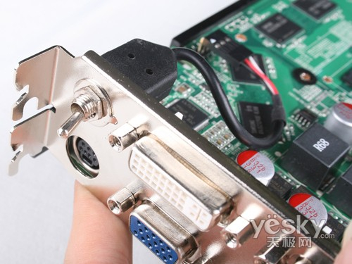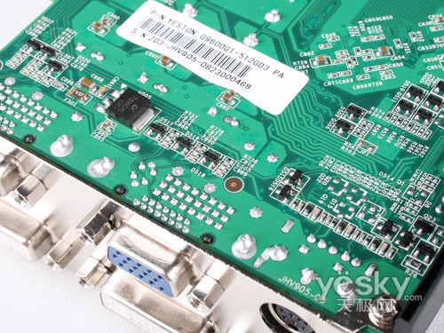 高频运行的核心和显存产生的干扰会严重显示信号的输出,因此需要良好完整的低通滤波电路来滤除杂波,盈通G9600GT-512GD3游戏高手虽然采用非公版设计、还是提供了非常完整的低通滤波单元,丝毫不见缩水,保证了显卡2D输出画质。