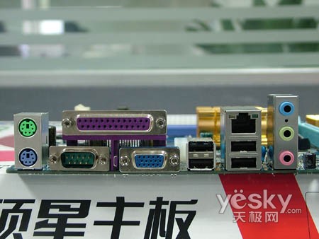 接口部分,主板提供2个SATA接口、8个USB接口和1个IDE接口,能够满足用户的一般应用需求。板载声卡支持5.1声道音效处理器,板载百兆自适应以太网卡。