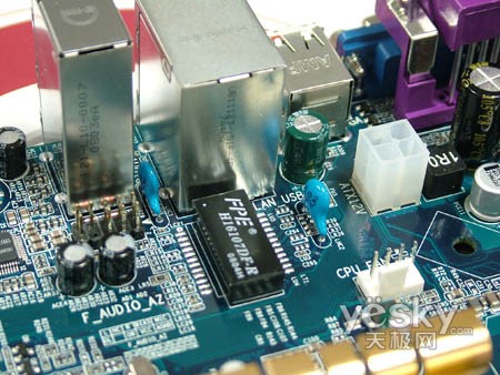内存部分,主板提供支持DDR2 800/667的2条内存插槽,支持双通道,最大可支持4G,完全能够满足用户未来的升级需要。内存部分采用独立电源供电,防止因内存供电不足而导致影响内存功效的情况的发生。