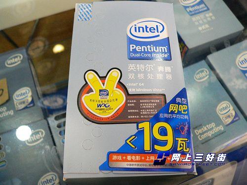 英特尔 奔腾E 2160盒包处理器的突出特点就是平均功耗小于19W,支持英特尔64位处理技术,并提供对Windows vista操作系统的完美支持。另外在包装右下角还特地标出了中国软件测试中心给出的功耗结果,报告编号为ZT280709027。无论是对于网吧,还是我们这次推荐的用户群——家庭用户群。毕竟电费对于普通家庭也是一块不小的开支。