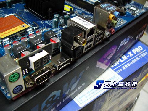 在I/O接口方面,杰微JWP35主板提供了非常齐全的设置,包括E-SATA接口、同轴音频输出和4个USB接口。尤其是在I/O接口处设置了DeBug灯,方便用户检测系统状态,非常贴心的设计。