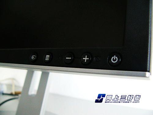 2408WFP的OSD控制键被设计在了显示器底边框的右侧部分,黑色圆形的内凹式按键与其前身2407WFP如出一辙,4+1式的按键为用户提供了完美的解决方案,经过火舞亲身使用之后,给予静音设计的OSD控制键手感相当不错。