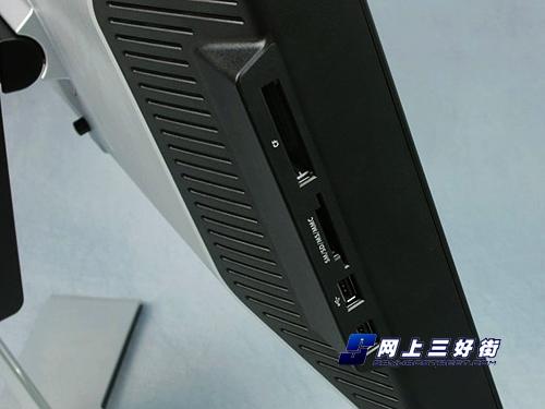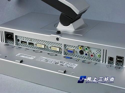 接口方面是这款2408WFP最能吸引消费者眼球的地方,2408WFP不但配备有DVI*2+VGA三接口模式,还添加了S端子、色差接口、分量接口、音频接口以及USB 2.0接口以外,还添加了高端显示器上常见的HDMI接口以及非主流的DisplayPort接口。齐全的接口完全可以满足所有消费者的任何应用需求。除此之外,该款显示器还在左边框的侧面添加有9合1读卡器,为消费者的多媒体娱乐生活添加了方便。