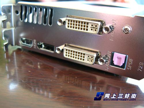 耕昇9600GT红旗H版的接口部分也是产品最具特色的特点之一,该产品配备了目前显卡中最全的接口,分别是双DVI,HDMI,Displayport以及SPDIF音频光纤输入口,这意味着支持现在或者以后主流的显示设备连接。