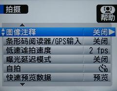 设置菜单中的2个选项也包含了许多选项,例如我们不常见的拍摄选项里的图像注释、GPS输入、AF选项里的组动态对焦、曝光里的设置中央重点区域等专业选项。第二项中则多为全局设置、可以对机身按键的自定义、电池、镜头类型的设定、或对相机进行常规的维护查看。回放菜单提有着类似消费级相机中的身影、比如幻灯片播放、剪裁等。