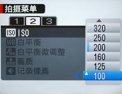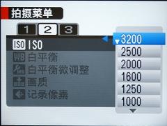 在拍摄菜单的第二项中,ISO选项也从100-3200以1/3级划分,这也和许多高端相机都有着相似之处。