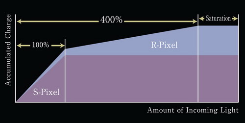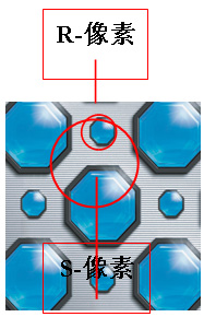 从下图,我们可以了解到S5Pro的CCD分为R像素与S像素两种,其中S像素记录来自物体反射光的主要图像亮度,同时R像素负责捕捉同一位置高光部分的图像信息。这样的设计能保证CCD拥有更好的动态范围表现,能捕捉到更多的亮部、暗部细节。