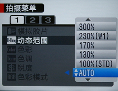 D-RANGE是S5 PRO的新特色,从100%一直到400%有六挡不同的动态范围值:100%(标准), 130%, 170%, 230%(宽1), 300% 和 400%(宽2),在S3 PRO的基础上有了更深层次的调整。