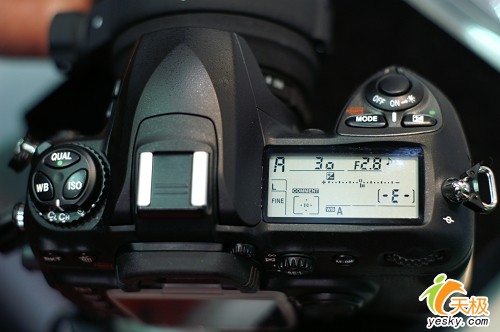 而S5Pro的机身顶部与D200也没有什么差别,其没有提供入门级数码单反上常见的曝光模式转盘。我们发现S5Pro的机顶液晶屏很大,能很详细的显示出相机的各类参数。