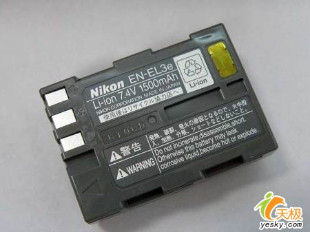 S5 PRO 采用了尼康D200全新的EN-EL3e电池,这一电池的容量为1500mAh,根据CIPA测试标准,其一次充电可拍摄约400张照片。