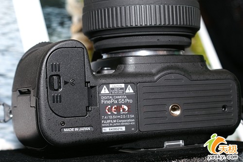 最后我们再来看看这款产品的底部,S5 Pro的机身底部有着三脚架螺孔,而从产品的机身底部的铭牌我们可以了解到其产地为日本。