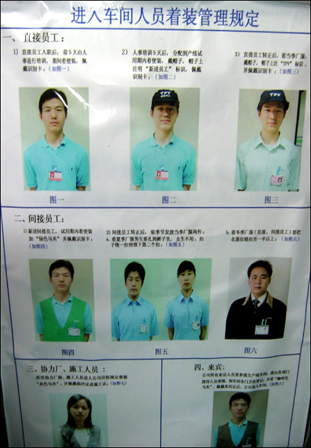 工厂的管理非常严格,我们进入工厂要统一按照着装管理规定执行。