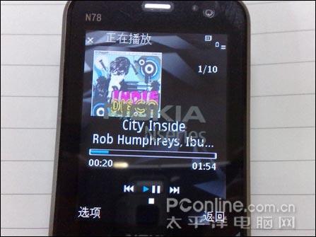 进入功能表后,其实大多数的功能,N78还是同N82等操作系统的智能机差不多的,比如内置了GPS导航模块,支持wifi无线网络,内置MP3播放器并且支持EQ调节等功能,基本都没什么差别,不过毕竟因为新系统,总能看见一些比较新的改进。