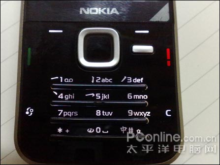 其实在N78还未正式上市的时候,很多人看了谍照,还以为N78的左右功能键是热感应触摸式的,其实那2个按钮还是可以按下去的,并非触摸式的,而且本次N78的数字键盘设计更加科幻了,相比N82的米粒型,N78索性来个牙签型,将4条黑黝黝的牙签作为数字键盘按钮,绿色拨号、红色挂机、功能表键、C删除键,也被设计在靠近机身的边缘。整个键盘面板采用了抛光塑料工艺,擦干净的时候真的非常漂亮,但是稍微使用几下之后,“指纹收集器”的皇冠再次的颁发给了N78的键盘了,o(∩_∩)o