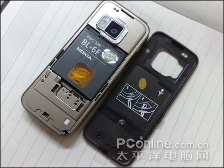 这里笔者又想来发表点儿言论。就是关于N78的电池后盖的设计。和N81一样,第一次开启感觉比较费劲,不敢太用力怕掰断后盖,拆下之后发觉N78的后盖卡口和N81的设计也是一样的,塑料弹簧设计,不过在写N81的时候还挺担心这个卡口比较容易损坏,不过经过那么长时间的考证,貌似没有人出现这个弹簧被按断掉的经历,所以大家不要担心,拆后盖稍微用点儿力,两边的卡口再打开,就可以轻松卸下后盖。然后在装后盖的时候,也小小的研究了片刻,首先需要先从顶部的卡口入手,用力压下去,然后再将两边的卡口依次按牢,最后是底部的卡口。感觉后盖设计成这样,经常拆卸比较费劲,而且容易松动,所以平时不要频繁更换电池比较省心啦。