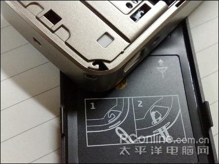 最后来研究研究N78的背部。与N81一样,采用一整块电池后盖的设计,同样使用了不耐磨的抛光工艺,深色的后盖估计需要平日里使用的当心点儿。自带了一个320万像素,卡尔蔡司认证的镜头,下文我们会来介绍N78的照相功能。继续拆下电池后盖看看内部构造,发觉电池后盖里还有教用户如何穿手机绳的图示,这种小图示表现了诺基亚的贴心之处,而且电池盖上笔者还发觉有2处金属触点,一个天线的图标,并且在电池盖里有黑色导体存在,从网上某些人的说法是,后盖可以增强手机接受信号,不过这个还有待考证。