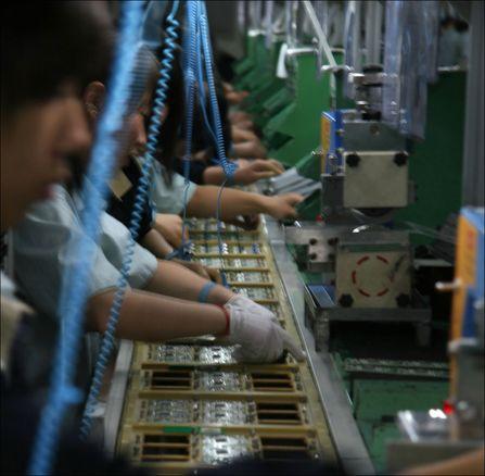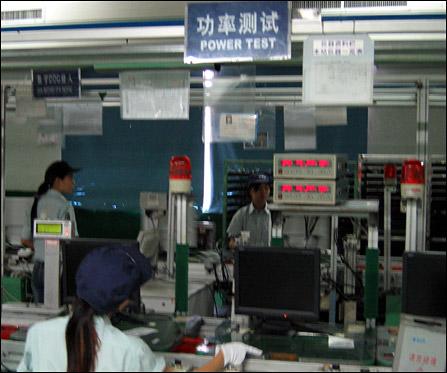 在福清冠捷工厂内,06年开始在原厂区北面新拔地而起的一座5层高的新生产厂房。这就是冠捷与中华映管合作创立的华冠光电的生产线所在,在冠捷被成为北厂。工作人员介绍,在这里所生产的产品为为液晶显示模组(LCM),由将组立框架﹑背光板﹑驱动IC与CELL组装而成,并直接提供冠捷在福建和武汉的工厂用于组装显示器和TV。北厂跟其他车间的最大不同在于是从五层的面板切割到一层的LCD成品组装,完成的是真正的一条龙生产。也就是从LCM组装到LCD显示器成品出货,在一栋楼里全部完成。