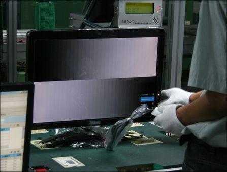 测试包括电压调整、画面调整和白平衡调整。先要用肉眼观察颜色、几何失真以及汇聚等情况,然后再进行色彩方面的校准,主要利用彩色分析仪进行色彩分析,以确定显示色彩是否均匀,色纯是否能够达到指标。这道工序的最后一个检验是再次进行图像质量的测试,测试不用人工,而是用电子设备,以保证产品质量。