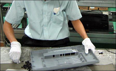 LCD制造流程可分为进料检验;Panel加工;前框检验、加工;升压器与主机锁付;锁付信号线;保护罩锁付;盖后壳;预热前功能测试。中途还有多个检测NG环节,据冠捷有关人士介绍,目前一台LCD显示器的生产工时为0.5个工时,若在新的生产流程下,生产工时有可能更低。