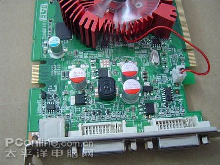 供电部分,显卡采用了目前较为流行的核心 / 显存独立供电设计,使用多颗优质的固态电解电容和全封闭式防磁电感线圈。