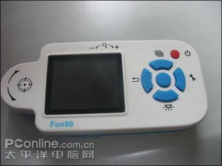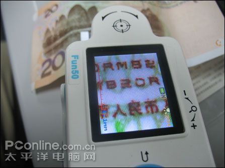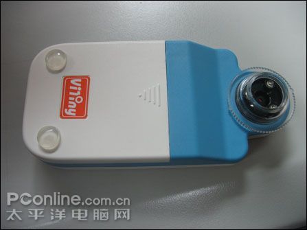 这款ViTiny 20倍电子放大镜采用了CMOS感光元件,规格为30W像素。成像效果只能用中规中矩来形容。在放大20倍之后,图像的噪点很多,但是由于镜头旁边有三个亮度可调LED灯,所以成像质量以及亮度有了很大成都上的改善。本机采用了1.8寸彩色LED液晶屏幕来显示画面,由于该机拥有存储图像的功能,因此其内建了2MB内存,可以存储60张图片,图像的尺寸为320*240。使用3节七号电池供电,并可以通过数据线给充电电池充电。