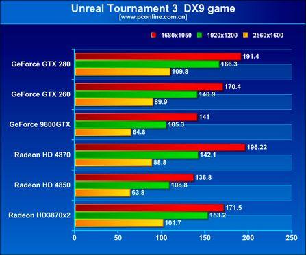 在虚幻竞技场3的测试中,HD4870再次领先于对手GTX 260。